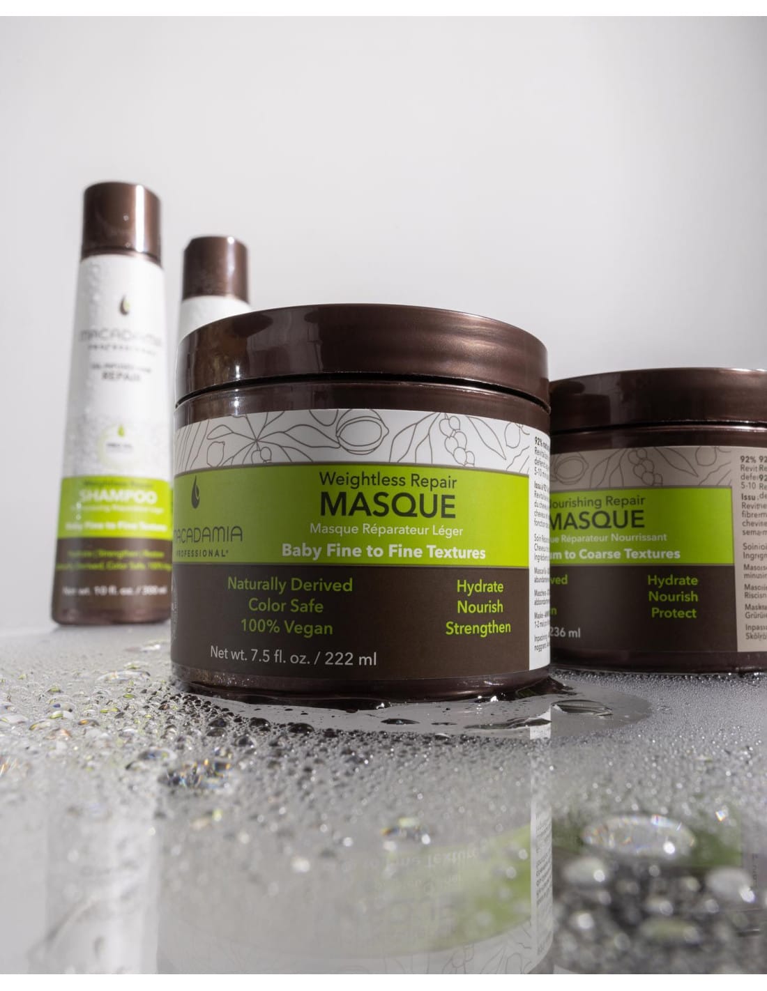 Lengvos tekstūros atkuriamoji plaukų kaukė maitina, drėkina ir atkuria plonus plaukus be apsunkinimo. Su makadamijų, argano, kokosų ir graikinių riešutų aliejais – suteikia žvilgesio ir švelnumo.