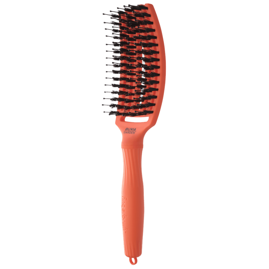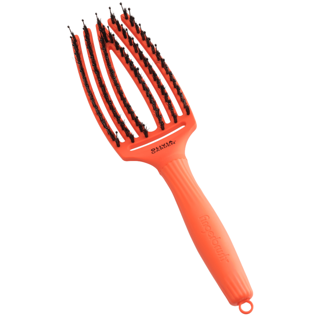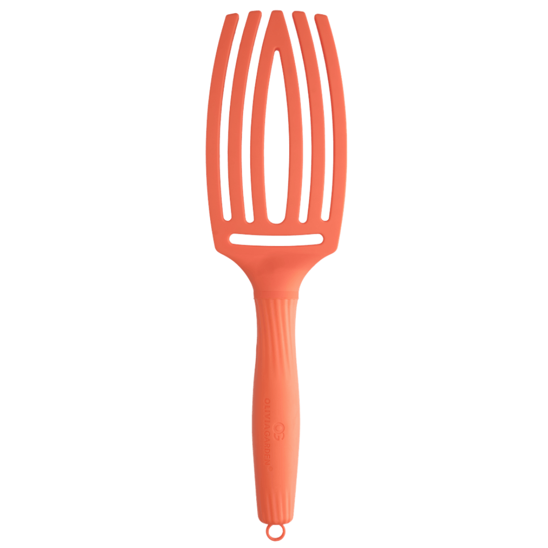 Olivia Garden Finger Brush Medium plaukų šepetys švelniai iššukuoja, masažuoja galvos odą, mažina elektrinimąsi ir pagreitina plaukų džiovinimą. Tinka visiems plaukų tipams.