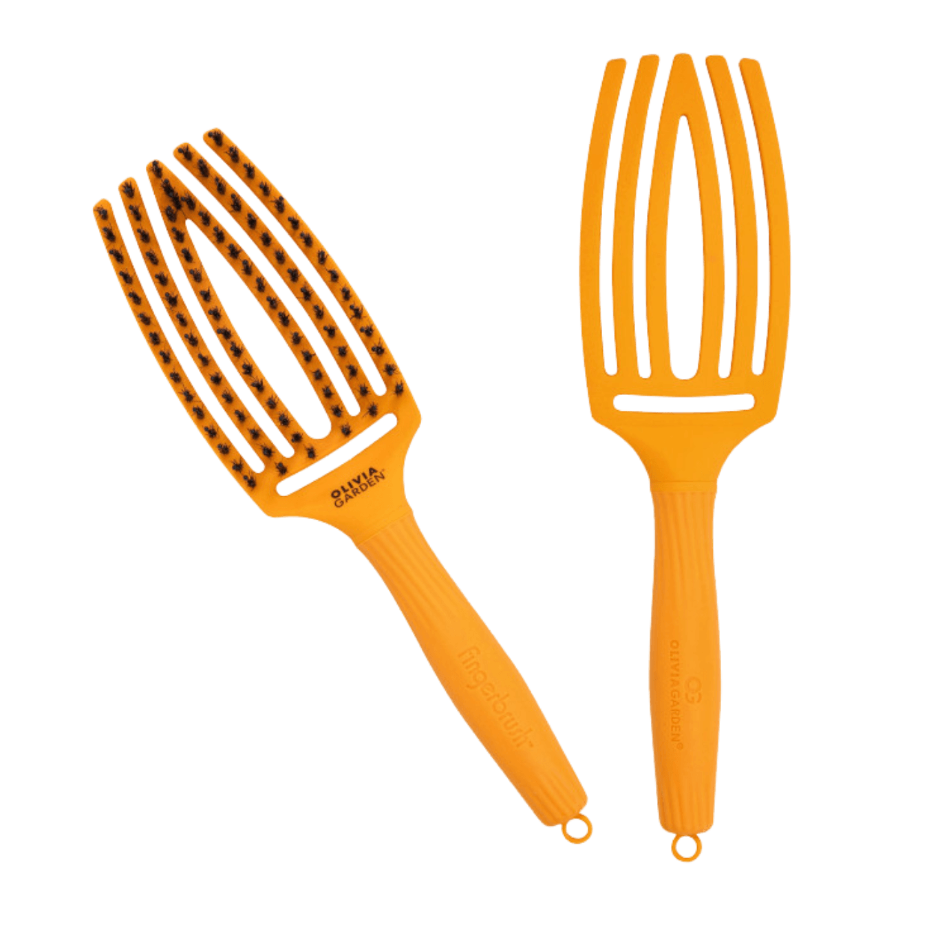 Olivia Garden Finger Brush Medium plaukų šepetys švelniai iššukuoja, masažuoja galvos odą, mažina elektrinimąsi ir pagreitina plaukų džiovinimą. Tinka visiems plaukų tipams.
