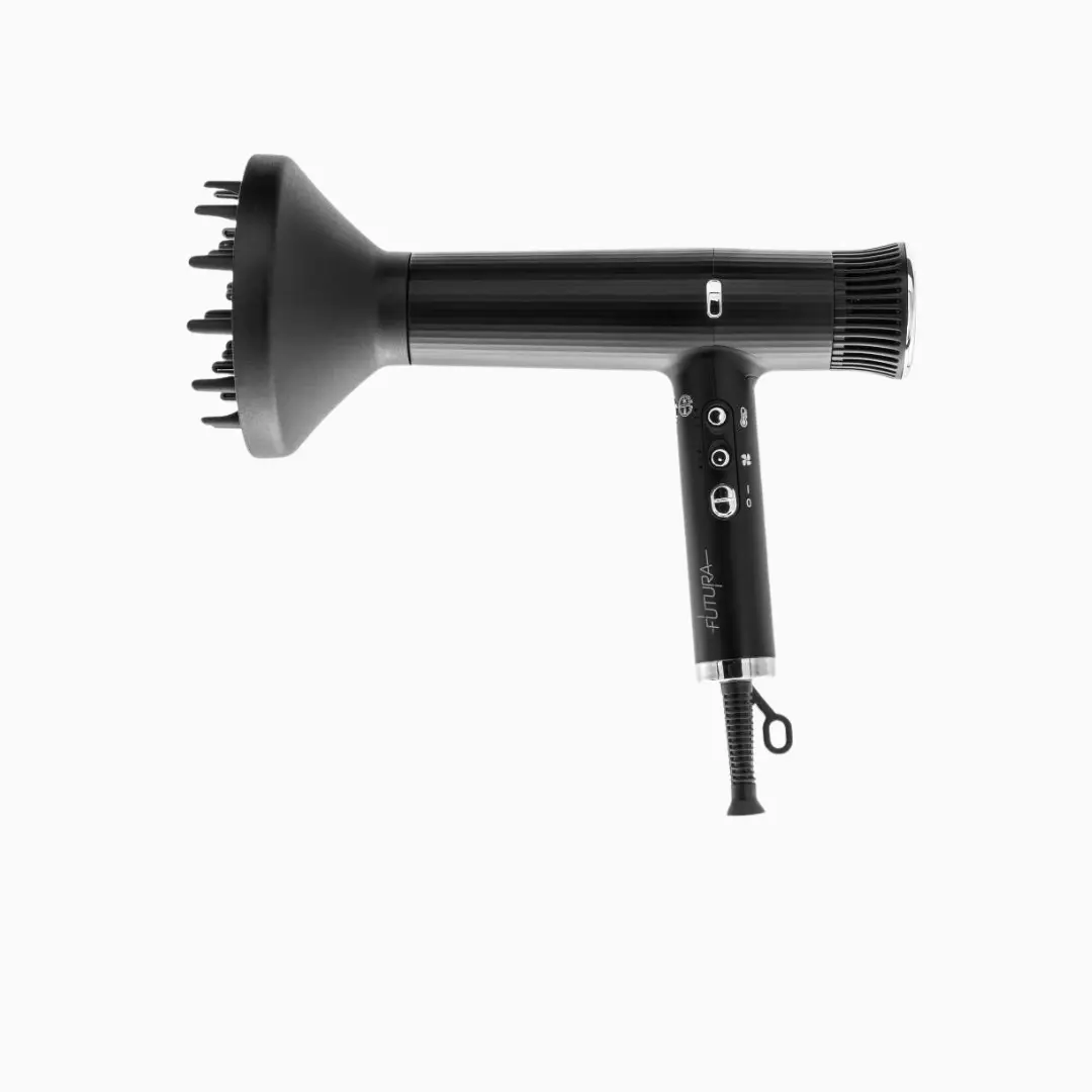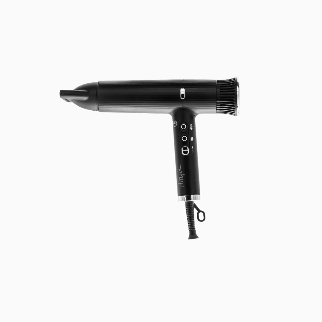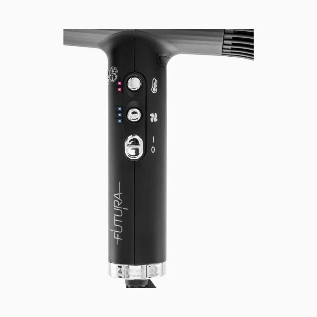 Kompaktiški matmenys (195 × 54 × 170 mm) ir ergonomiška forma užtikrina patogų darbą, o juodos spalvos korpusas su sidabro detalėmis suteikia modernų, profesionalų įvaizdį. „Futura“ yra patikimas pasirinkimas tiek salonams, tiek vartotojams, ieškantiems lengvo ir efektyvaus džiovintuvo kasdieniam naudojimui.